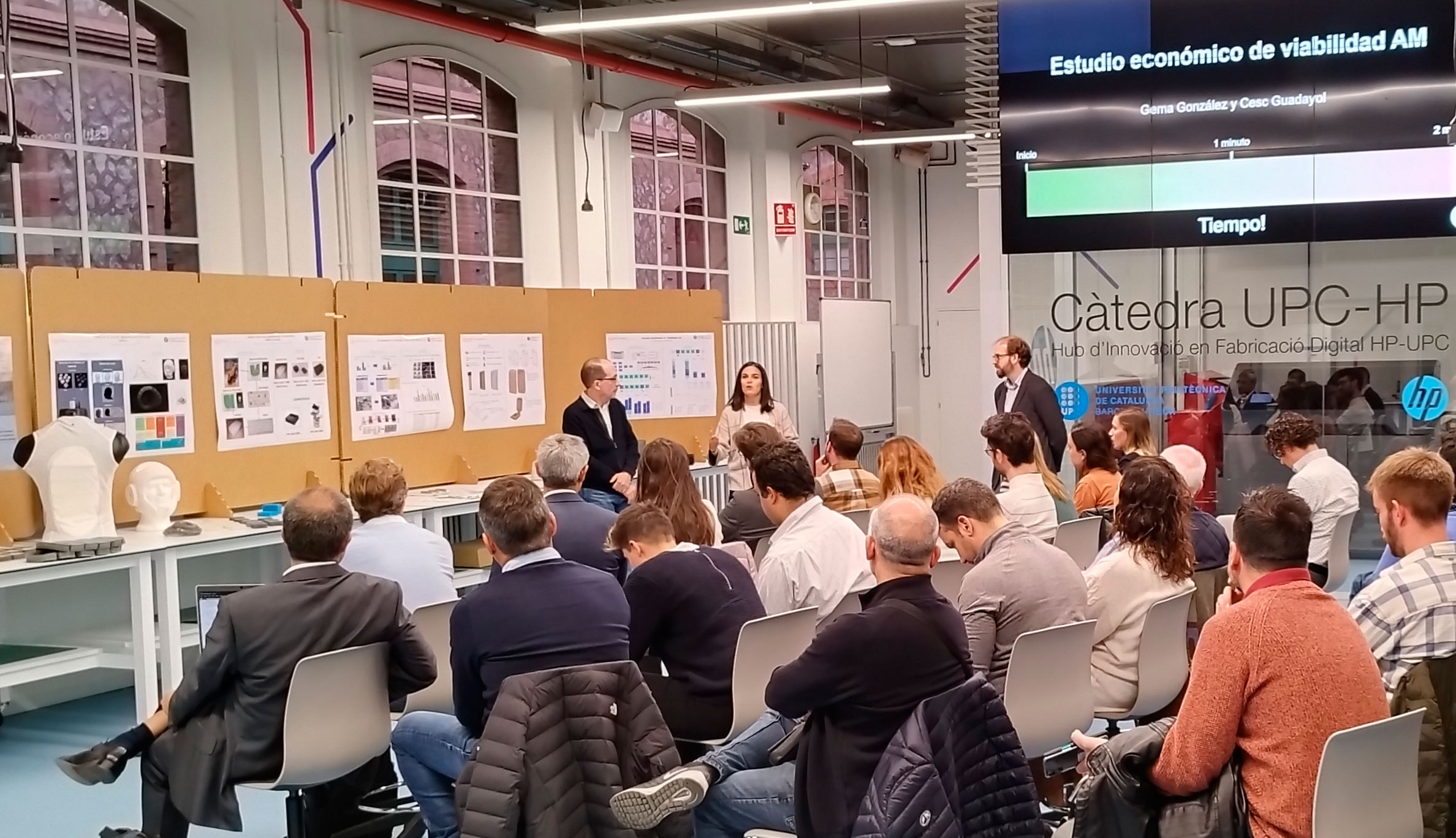 Els estudiants de la primera promoció del màster en Fabricació Additiva de la UPC School han presentat els seus projectes finals al Digital Lab de l’ESEIAAT-UPC. La sessió, que es va desenvolupar en format concurs elevator pitch, va comptar amb l’assistència d’una trentena d’empreses i professionals del sector.